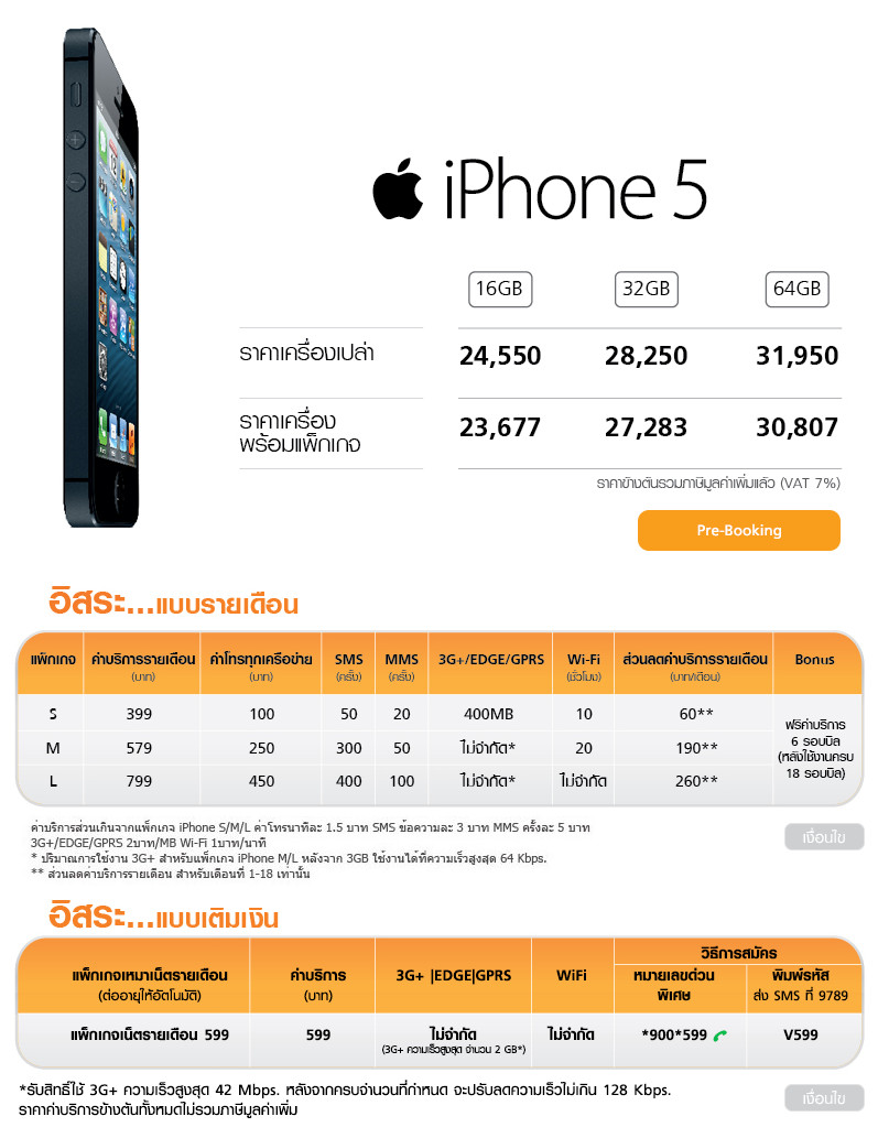 ราคา iPhone 5 เครื่องพร้อมแพ็กเกจ